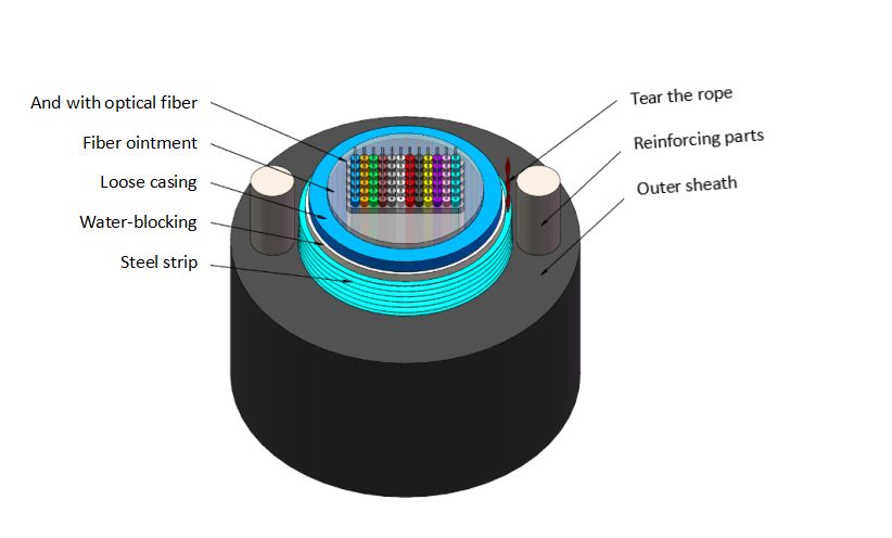 Descrição do Produto [ Componentes reforçados com metal, cabo óptico externo de comunicação totalmente preenchido, tipo tubo central com bainha de ligação de aço-polietileno ] A estrutura do cabo óptico é inserir fita de fibra óptica multimodo ou monomodo em plástico de alto módulo para formar um tubo solto preenchido com composto à prova d'água no interior e colocá-lo no centro do cabo. A parte externa do tubo é longitudinalmente enrolada com fita de aço e água. Dois fios de aço paralelos são embutidos na bainha de polietileno como componentes de reforço para cabeamento.
